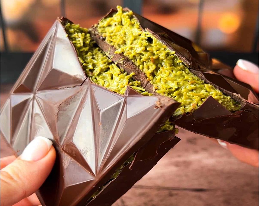 Dubai’den dönen bir arkadaşımın hediye olarak getirdiği Dubai çikolatasını incelerken benim gözlemlerim de şu şekilde oldu: Çikolatanın iç dolgusundaki fıstık parçaları ve kadayıf telleri ürüne ağızda hoş bir doku kazandırmaktadır. Kadayıf tellerinin önceden kızartılmış olması, muhtemelen Maillard tepkimesi sayesinde dolguya ek bir lezzet katmıştır. Fıstık ezmesi ve tahin birleşimi ise iç dolguda hoş bir parlaklık oluşturmuştur. Ayrıca sağlık açısından olumlu etkileri bilinen fıstık, tahin ve kakao, ürüne fonksiyonel bir gıda özelliği de kazandırmaktadır.